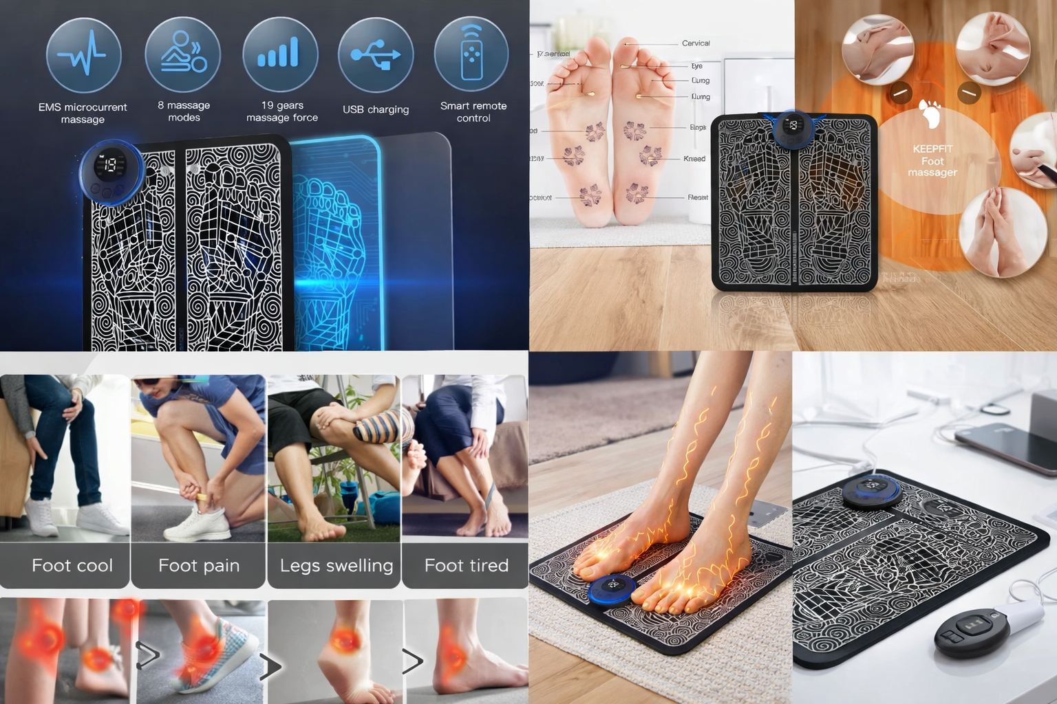 Relax tired feet in minutes with our Electric EMS Foot Massager Pad. Using gentle electrical muscle stimulation (EMS), it helps improve blood circulation, relieve soreness, and reduce daily foot fatigue. Simply place your feet on the pad, choose your intensity, and enjoy a soothing, spa-like massage at home or work. Ultra-thin, lightweight, and easy to use—perfect for relaxation, recovery, and everyday foot care.